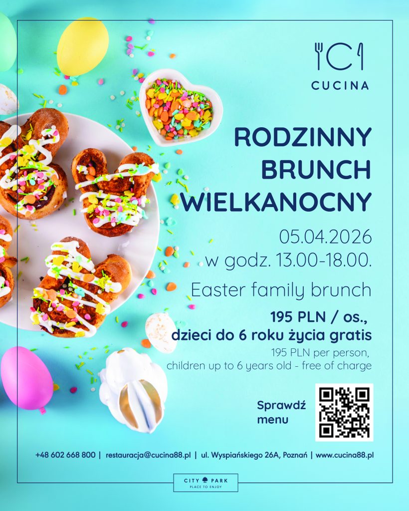Wielkanoc to czas bliskości, tradycji i wspólnych chwil przy stole. W tym roku pozwólcie sobie Państwo na świętowanie bez pośpiechu i przedświątecznych przygotowań. W Restauracji Cucina 88 czeka na Was obfity, świąteczny bufet, w którym smak spotyka się z tradycją, a radość wspólnie spędzanego czasu staje się najważniejszym składnikiem tego wyjątkowego dnia.